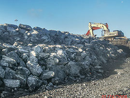 Alaska Marine's work successfully maintained beach erosion control on the Homer Spit. The project pivoted on the blasting, sorting and transportation of armor rock to the barge loading area in Seldovia. Alaska Marine mobilized equipment and material via a time chartered barge. Successful tug and barging operations were crucial in terms of maneuvering assets quickly and efficiently. Highly trained personnel placed the rock.