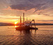 Alaska Marine Excavation's portable hydraulic dredge is a floating plant that facilitates underwater excavation of gravel or sand with the use of a cutter-head to loosen the sediment. Suction produced by a hydraulic pump removes the sediment and transports the slurry of material to a different location thousands of feet away via an HDPE pipeline.